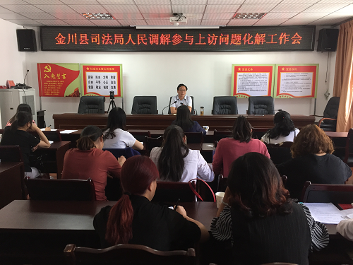 5月23日,司法部和省司法厅相继召开了“人民调解参与信访问题化解试点工作电视电话会议”,为认真贯彻落实好会议精神。金川县司法局庚即召开会议,对人民调解参与信访问题化解工作进行安排部署。